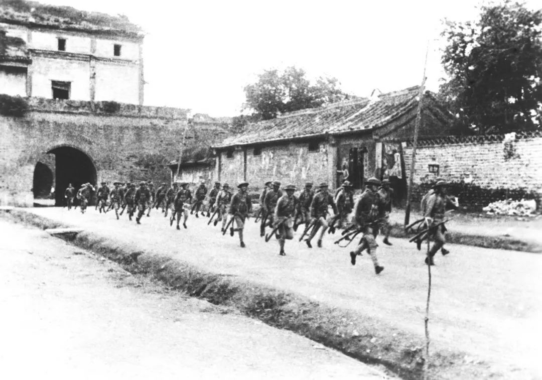 驻守宛平城的中国军队奔赴卢沟桥抵抗日军。